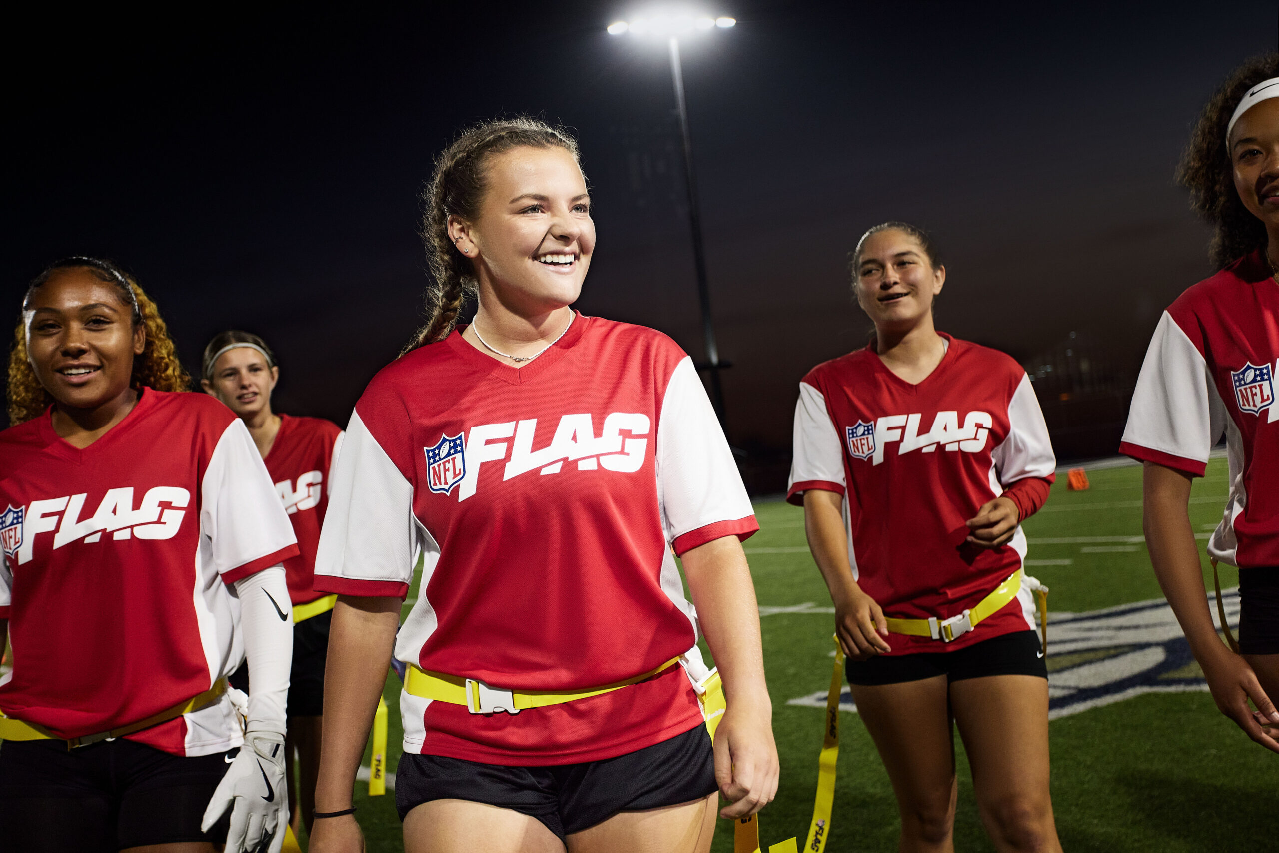 This is a 5 v. 5 NFL FLAG non-contact, version of flag football. Each roster may hold 10 players and a maximum of two coaches.